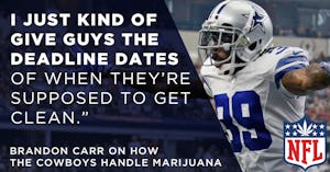 This is not, Carr stresses, an admission that the Cowboys have a drug-dirty locker room. It’s Carr’s realistic appraisal that marijuana simply is part of the NFL’s culture. Why wouldn’t it be, he asks, given that it has become more accepted legally and socially, especially among millennials?